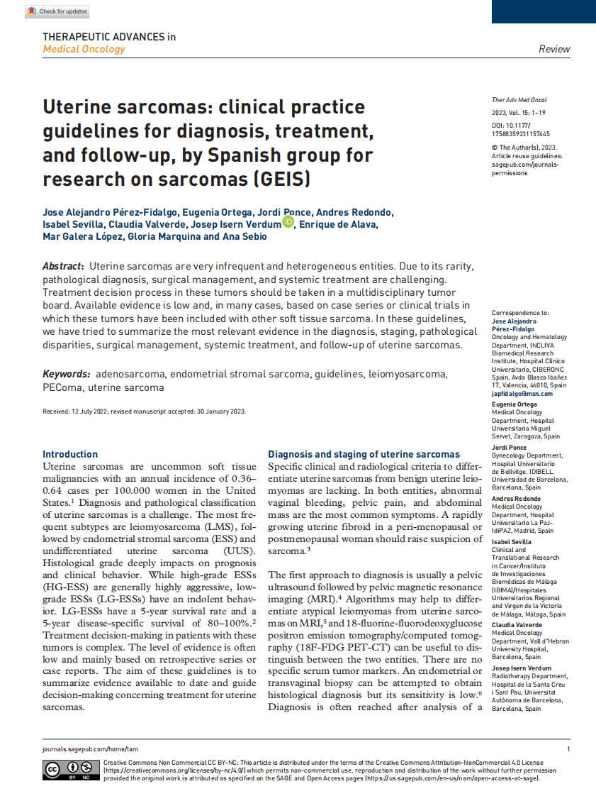首页共识指南医学指南GEIS临床实践指南:子宫肉瘤的诊断,治疗和随访