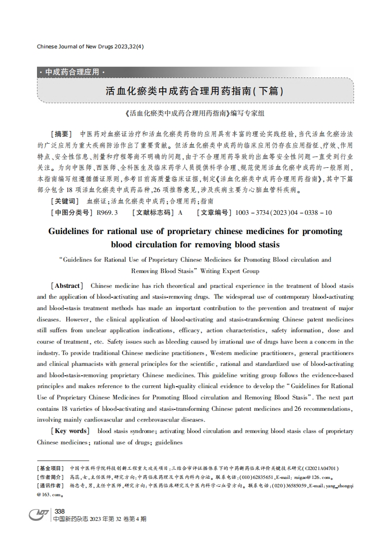 首页共识指南医学指南活血化瘀类中成药合理用药指南(下篇)