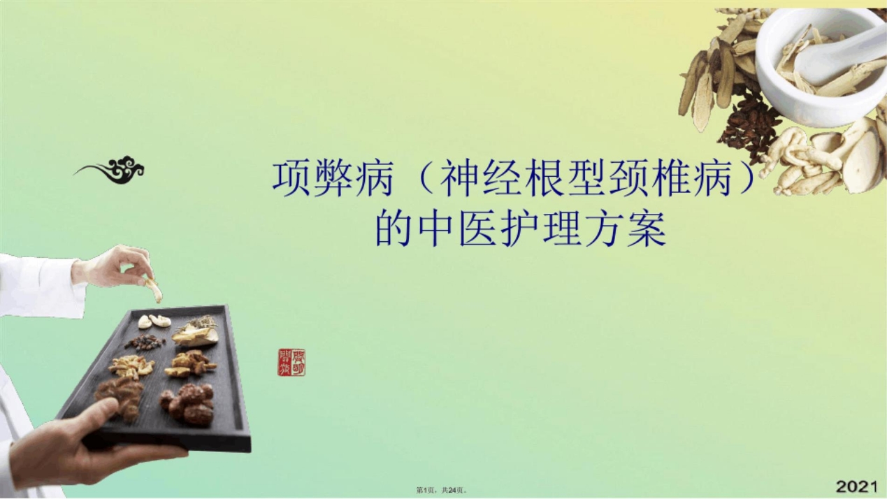 颈椎病中医护理方案(共24张PPT)