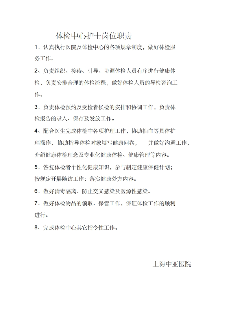 首页综合资料体检中心体检中心护士岗位职责
