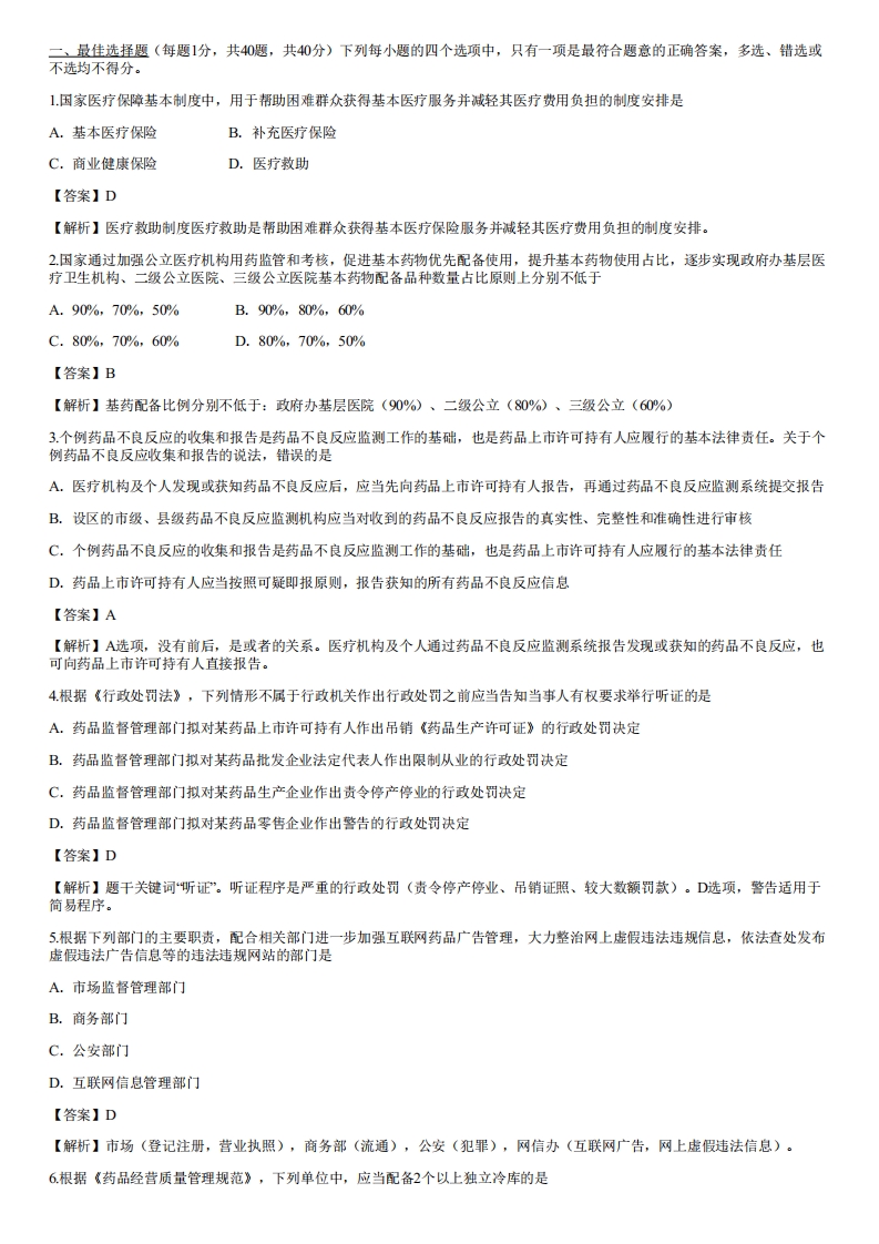 2022年执业药师考试《药事管理与法规》真题及解析