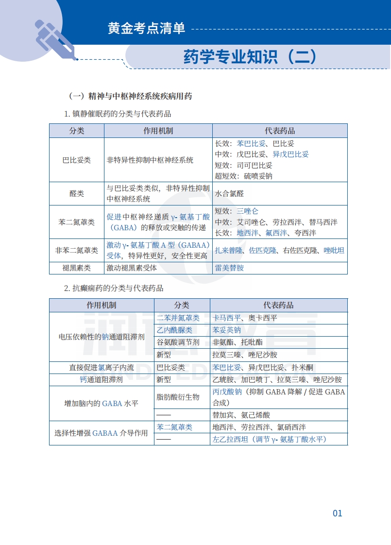 首页药剂药学药师考试药学专业知识(二)黄金考点