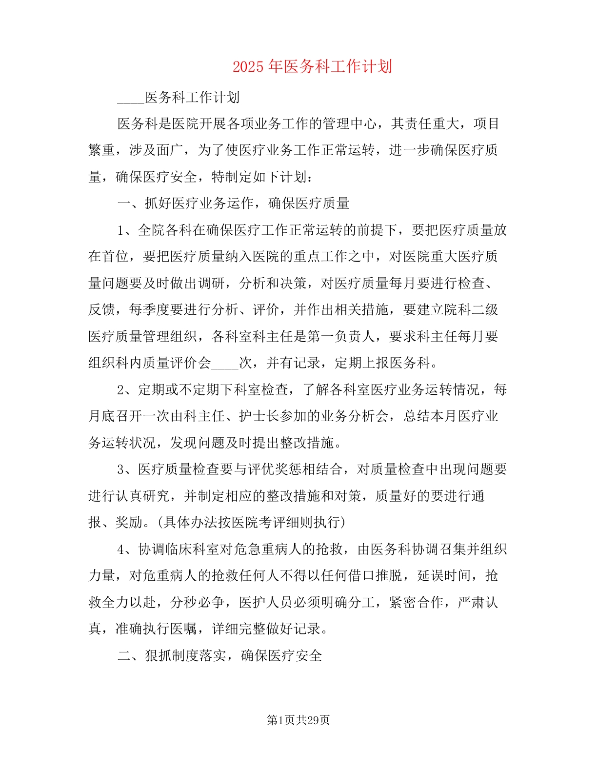2025年医务科工作计划(6篇)