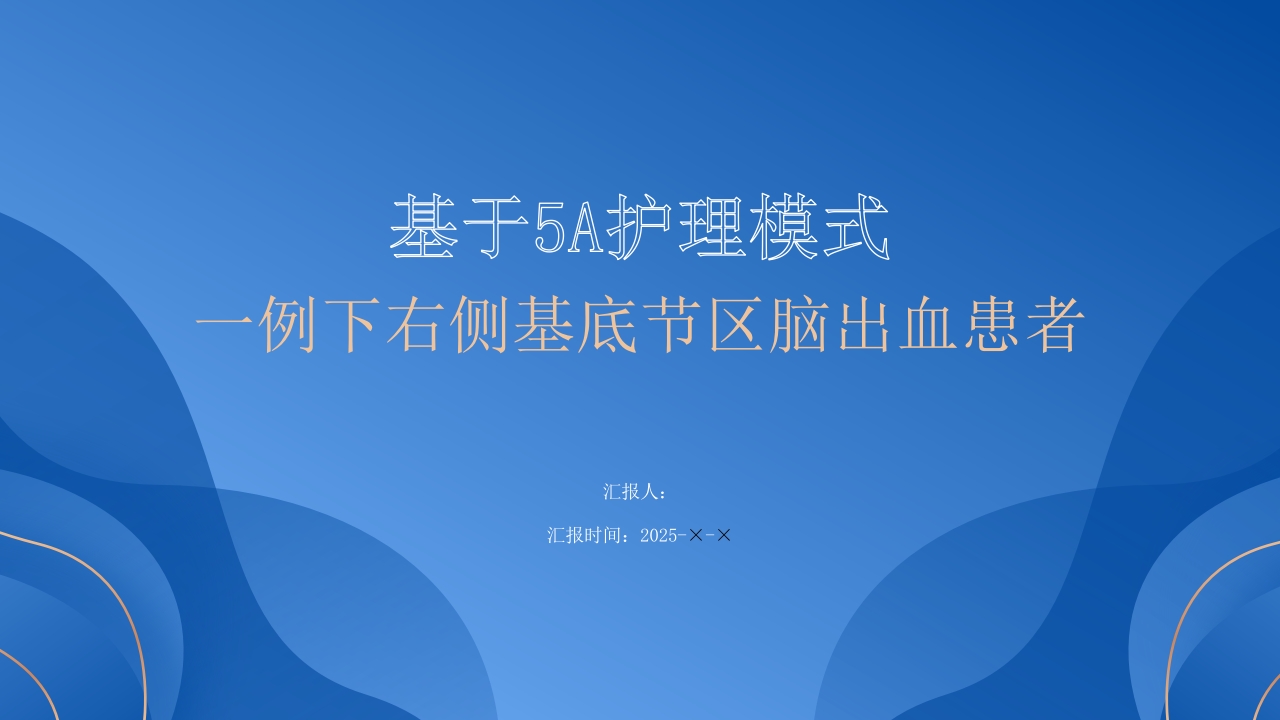 首页护理专题内科系统护理基于5A护理模式一例下右侧基底节区脑出血患者