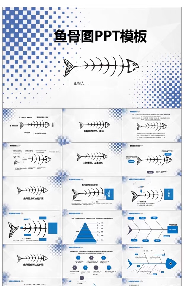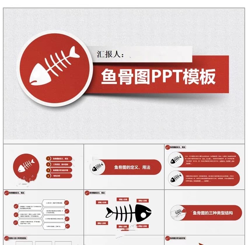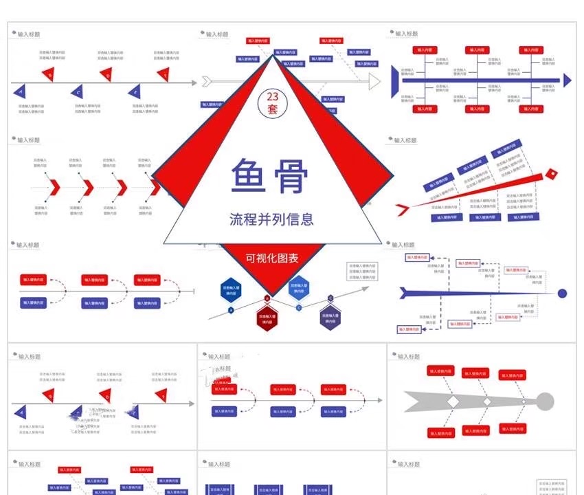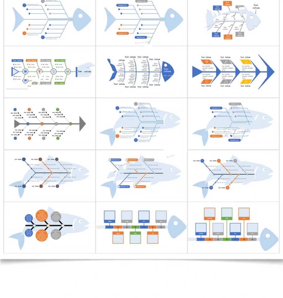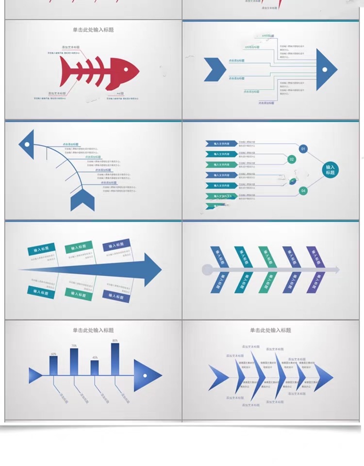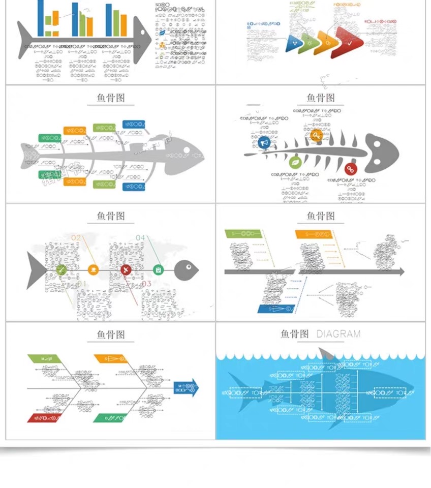 鱼骨图PPT模板qc品管圈医疗院创意扁平化图表分析形信息可视流程